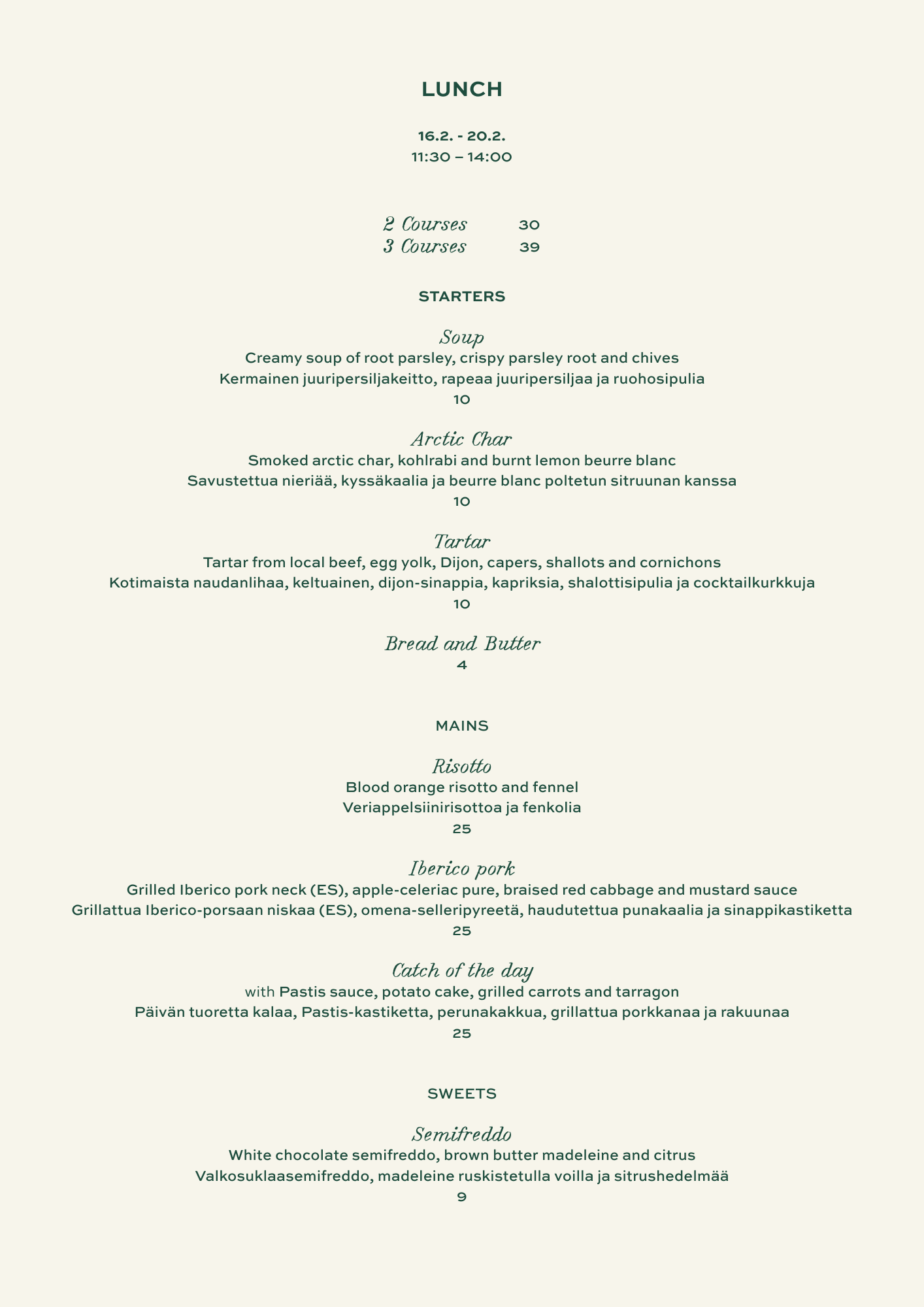(Viimeiset varaukset: arkisin klo 21, pe–la klo 22 ja su klo 18)